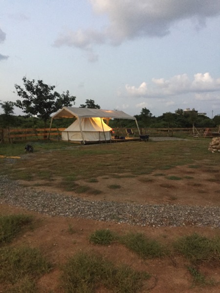 夜宿決定來的倉促,在漆黑中,摸索著點上蚊香,把野營的電燈裝上,這樣的「夜不歸營」還稱不上「回歸自然」,頂多是蒼穹取代了天花板,卻也讓兩個半百老叟老嫗(這個稱呼還沒經過另一個當事人同意)大費周章,直到半夜,老伴還嚷著是不是去附近旅館訂房。