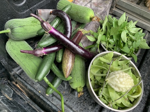 盡量挑選地瓜葉、小黃瓜、九層塔,這些不怕蟲吃的菜種,免得沮喪來得太快,幸好,伊只負責栽苗跟收成,期間的除草、除蟲、施肥、架高、套袋,全是咱「家奴」伺候,直到現在,她還天真的以為,栽下,就是收獲。