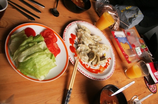 所以週末的早餐,除了荷蘭食物外,我家的餐桌偶爾還會出現個煎餃鍋貼啦!