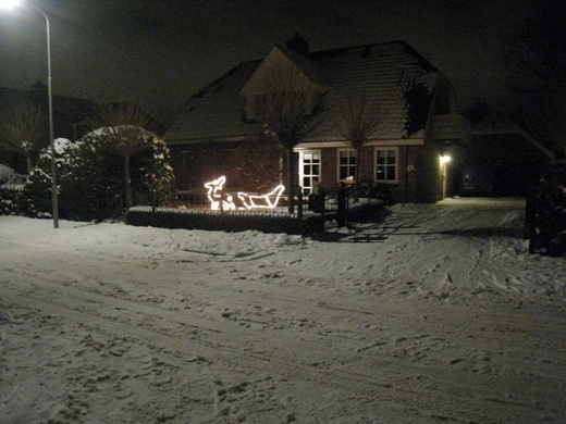附近有人家在前院擺放著聖誕節風的燈, 在雪白安靜的冬日, 增添了一點熱鬧...