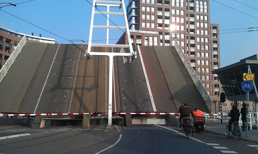 學習荷蘭文的書籍中,有一本蠻普遍的教材,一篇人叫它:綠書(Groen boek),記得在台灣時,有一次看到其中一篇文章在討論人們怎麼通勤去上課或上班的,其中有一個學生上課常遲到,交通不好是遲到的原因,像是天氣,嚴重的塞車,他還提到了,因為有時候橋會打開,我那時心裡想:橋打開還可以是原因喔,真的是很難想像。