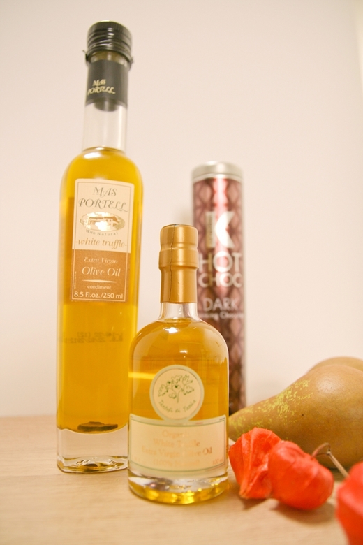 不過一試之後,覺得真的要等到松露的味道散到橄欖油裡,應該要等好幾年吧(而且算一算,也沒有比用買松露油划算),記得店裡有看到松露油,所以好奇心又浮起來了。 簡直就像是在作科學實驗的我,最後居然共買了二瓶松露油,雖然網路上很多人說巿面上95-99%的松露油是化學合成油,但是偏偏在這裡就是可以買到那1-5%真的用加松露進去橄欖油的而製成的白松露油!第一次買的松露的香氣比較不濃,後來看到一瓶天然有機的白松露油,就又忍不住想要下手了(聖誕節聖誕節!),果真味道濃厚很多,加進pasta或是沙拉真的能添不少的風味,但是味道跟新鮮松露還是差的遠矣...
