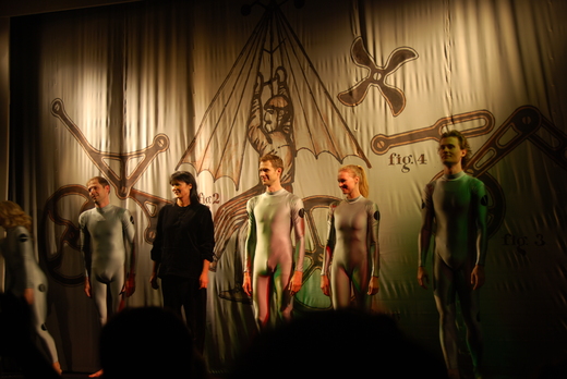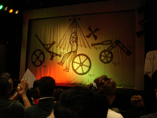所謂『黑嘛嘛之夜』,其實就是捷克馳名的『黑光劇』欣賞,此次演出主要是以一台時光機器為戲劇主軸,然後再以舞蹈穿插並連貫整場表演,而裡面最耐人尋味的,莫過於在舞蹈過程中,除了刻意要顯像的劇中角色外,只會看到一些螢光的立體圖形在舞台上律動,就再也找不到其他舞者的身影,讓一直對物理頗為自負的自己,即使再三回顧從前讀過的光學原理,卻始終百思不得其解,找不出一絲破綻…。