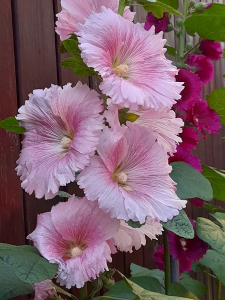 蜀葵,為錦葵科蜀葵屬多年生草本植物,原產中國西南地區,別稱一丈紅、熟季花、麻杆花、戎葵、吳葵、衛足葵、胡葵等。高可達2.5米是最大特色,全株被星狀毛,莖綠或綠褐色木質化,直立不分枝。葉互生,圓鈍或卵狀圓形。花單瓣或重瓣,單生於葉腋,開紅、紫、白、黃及黑紫色花,花期3-6月。