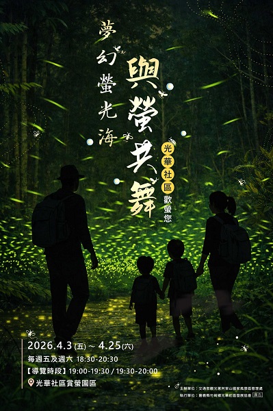 阿里山國家風景區管理處與嘉義竹崎光華社區,選在4月3日至4月25日推出「夢幻螢光海—與螢共舞」,活動期間每週五和週六夜晚18:30至20:30,在光華村賞螢園區邀民眾走入山林賞螢去。