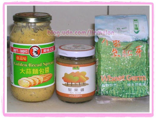 這是今天的主角:強蒜味大蒜醬、有機堅果醬、有機小麥胚芽
