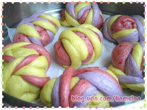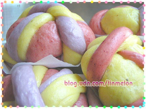本來嘛,花卷就是花卷,但我就是沒事找事做,把麵粉弄了三種顏色,