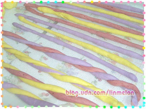 真的是自找麻煩,要捲三種顏色的麻花有夠費時間啊,