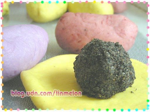 再全部把它們捲在一起,就成了今天的彩色芝麻花卷