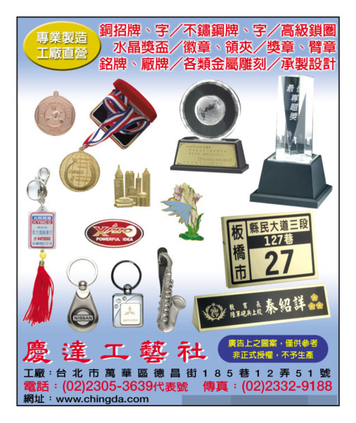 慶達工藝社~台北徽章獎章製作公司~客製化製作/快速估價/少量可做