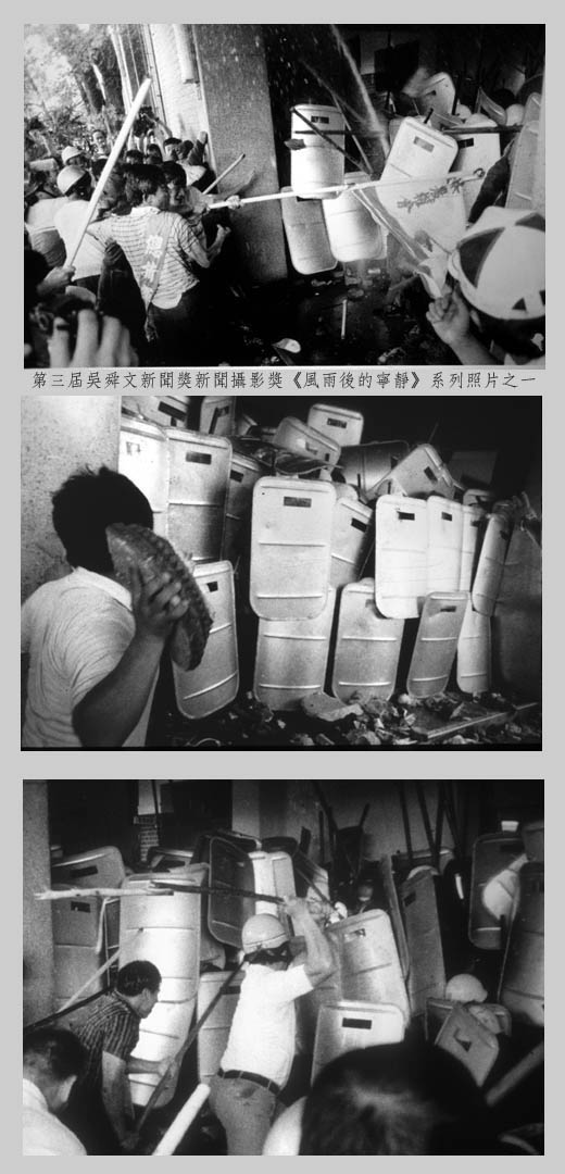 例如 520 ,一個樸實農民純粹爭取自身權益的運動,卻是付出最慘痛的一次街頭活動。雖然520事件我以《風雨後的寧靜》系列照片,獲得當年新聞攝影獎,獎金新台幣二十五萬元,但領獎時沒有喜悅的心情,那是一個很痛的見證 。