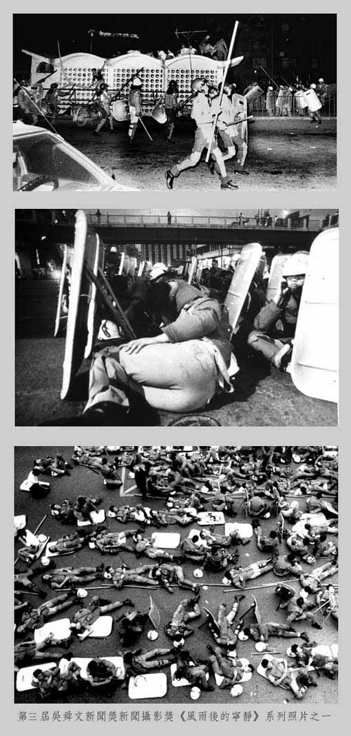 新一代的新聞攝影工作者,總愛聽我講述那街頭民主奮發的時代,被認為「抓耙仔」的感嘆;手拿著相機到處獵影,群眾會以為你是警察蒐證的「抓耙仔」,警察卻認為你是反蒐證的搗蛋份子,我們成為三明治中間那塊最被注意的肉,稍不留心就先被咬下口。