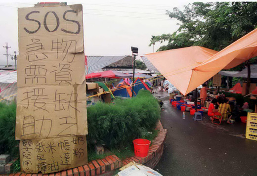 政治人物扭曲的面孔照常亂開支票,臉不紅氣不喘爭權奪利、口水謾罵、赤裸廝殺,選舉和既得利益才是他們在意;災民卻都慢慢被遺忘了,他們一直沒有離開自己的土地,雙腳還穩穩站著努力試圖浴火重生,現在每天紛飛的「禮券」、「發票」、「機要費」、「特別費」 …. 「珠寶」 … … 「綠卡」,對他們來說都是陌生,無法想像遙不可及的國度與揮霍,他們只想要雙腳留在自己的土地,還有一個溫暖的家。