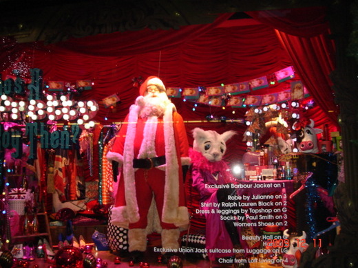 從每年的十月底開始,倫敦各大街就開始忙著裝飾聖誕街景,各百貨櫉窗及許多享有名氣的大小餐廳也開始展秀各式吸睛廣告,像是促請客人早早預訂聖誕大餐座席等,這個以商掛帥的國度裡,商家們為配合營造各種吸引人氣的花招在此時也日漸出招啦!這麼早就開始備戰並每天放點煙花出孔,主要還是要將這股聖誕節年氣從十月起慢慢加温,每個造勢吸睛活動都是逐日加强火力,經過一年來努力規劃創意換新,這股與日俱增的威力直帶到十二月時達到最高境界。