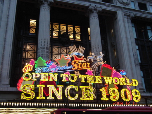 進入十二月時分,所有為因應聖誕節的各種家用品、服裝以及精緻貨品,可是全都齊了,整個市場進入百家爭鳴、全面抗戰作業啦!倫敦市區大街更是擠到要很費力才走的動的。大家都說今年全世界經濟不景氣,各種商業營收情況也不理想,但倫敦的購物人潮並未因此而減少,反而拉皮箱購貨的各國客人大增,放眼望去,拖著大號、中號拉箱滿載的人多了好些。BBC電視新聞也在不景氣聲中特別在新聞中提到在十二月十二日單日裡,有約二百萬的人潮在牛津街一帶逛街購物,當日粗估消費金額約有三千萬英鎊,好像要為經濟不景氣低迷的市場打一劑强心針,頗有鼓舞消費氣勢似的。