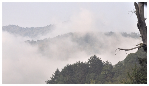 山之高,讓人仰望,即是登頂,並不會覺得人比山高,山比人大,而頭頂著天,更覺得人的渺小。站在山頭,賞雲馳蕩瀑,涼霧襲身,不覺煩擾,卻是沁懷,而不知覺間,天地人之間的感動,似乎讓心頭輕鬆了不少,而虛懷了許多!