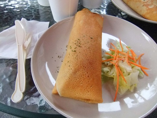 今年很勤奮,一館、二館、三館全都走一圈,從一早進去到走完兩點鐘己累癱了,看到這家「蘇塞特‧法式薄餅專賣店」像見到救星。它正好在我離開二館向捷運站走的路上,地點很方便,份量對我剛剛好,坐在街道咖啡桌看街景,感覺也很不錯。