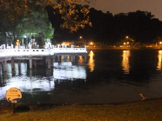 公園整理得很乾淨、漂亮,湖邊不時出現夜鷺的蹤影,這裡想必白天一定會有成群的白鷺鷥吧。
