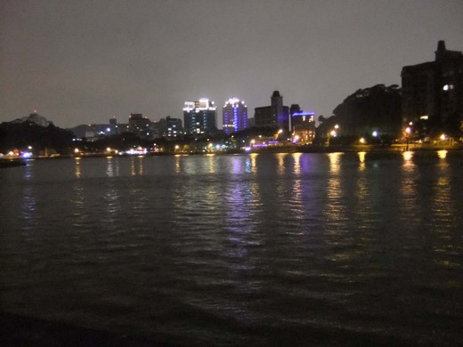 當週末晚上,我迫不及待夜探碧湖,天公不作美,天冷、風大,還下著毛毛細雨,我搭公車到內湖復興劇校時已經晚上七點,天色己暗,看不出湖在何方。向劇校警衛問了路,原來就在學校的右邊而已。