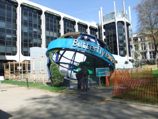 自然史博物館東邊的草坪有一大片空地作為特展區,冬天時這裡是一個廣大的溜冰場,春暖花開時節成了「蝴蝶探索展」,有一座「蝴蝶屋」,可以購票入內參觀蝴蝶的生活情形。