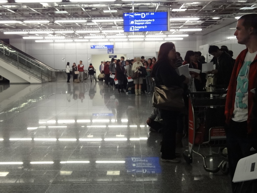 德國法蘭克福機場天空蔚藍,沒看到噴滿地的岩漿和想像中灰濛濛的天空,給了旅客不少信心,大家都以為可以在過境機場好好休息,明天再登機轉往英國。下機後才知不能領行李,要趕快填寫歐洲公約國家要求的「申根簽」向移民局申請簽證。