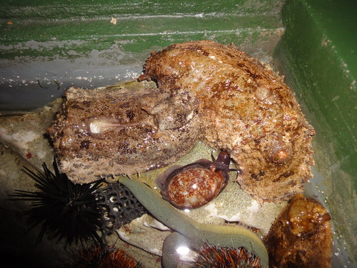 在鑽進被窩以前,我們還去觸摸池裡找今年因為兔年而大受歡迎的「海兔」,牠的主食是海藻,頭上有一對角,身材圓滾滾的像兔子,身上摸起來毛毛軟軟的,非常有趣。