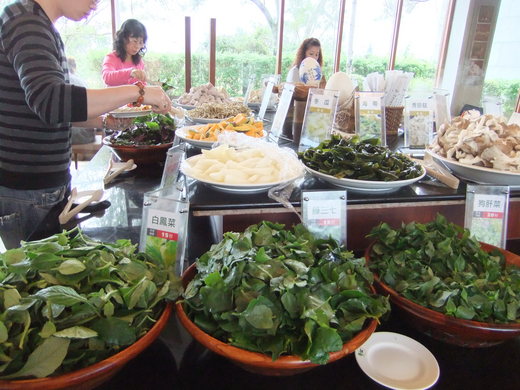 原生植物園裡的「水生植物區」實在太漂亮了,各種各樣的水生植物讓我們大開眼界,旁邊有造形別致的建築,池裡還悠遊著上千條可愛的魚兒。我們在旁邊的餐廳享受完美味的「野菜火鍋」,把自己餵飽以後,就要來餵魚兒咯!