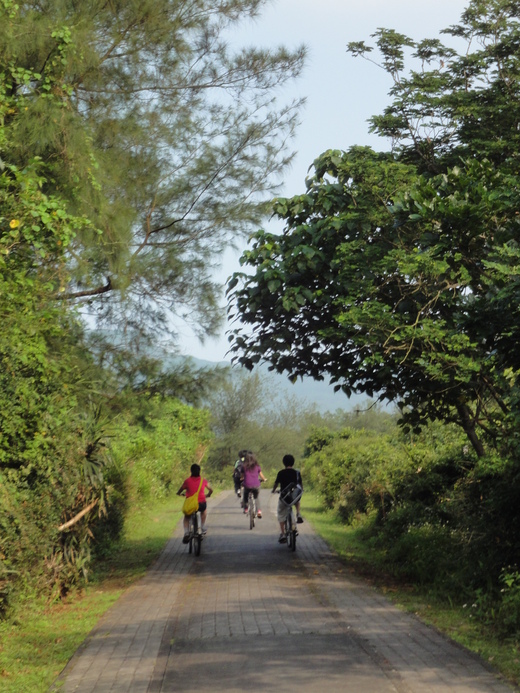 我們搬進小屋中,躺下來休息片刻,接著去騎腳踏車,一人一小時八十元。在林蔭間騎車很舒服,還看得到美麗的海景。