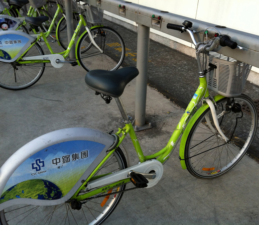 從市區國賓飯店門口可以租公用單車,高雄市民用e卡通,外地人可以用信用卡來租。第一個小時免費,之後