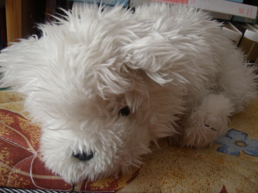 妹妹二歲生日的時候收到的馬爾濟斯的玩具狗,樣子很可愛抱它的時候還會發出烏--烏--汪--汪的聲音,讓人喜歡,因此陪妹妹渡過許多孤單的日子,玩具狗真好,沒有吃、喝、拉、撒的問題。