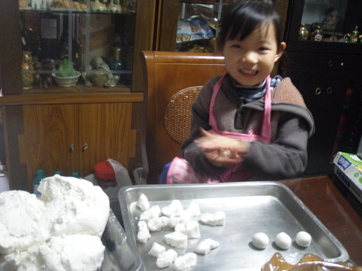 結婚後為人妻、為人母的我已很少與母親聚在一起搓湯圓了,隨著時代變遷,機器代替手工,不管甚麼日子都買得到湯圓、也吃得到湯圓,也許年齡漸長,我卻越來越喜歡古早味,在冬至這天,我仍然選擇親自搓湯圓,看著小孫女興致勃勃的樣子,搓出的樣子大小不一,但是那種QQ的感覺,讓我覺得這才算是真正的在過冬至日子,而過了這團圓日子又長了一歲,孩子高興,我躊躇..,也在這天特別想念著母親…。