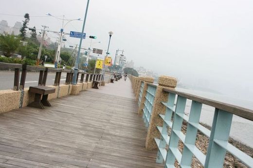 走著走著,發現沿岸大不同呢!應該是自己太久太久沒來了,還停留在重整前的記憶中。重整後,有自行車與人行的步道,相當乾淨,彷彿有種身處國外的想法,感覺還真不錯,雖然多了些人工。在往漁人碼頭的路上,正好有兩對新人在拍婚紗照,好不幸福,自己也被感染了那種感覺,心裡也跟著微笑;只是回來時,兩對新人早已離去,卻也不知是哪一對新人遺留下了捧花在步道邊的椅子上未帶走,頓時一種莫名而來的感慨從心響起,孤獨寂寞的美,竟如此的淒涼;同時也怪那攝影助理的不細心,怎麼會犯下這種不該犯的錯,如果還要拍攝,怎麼辦??想著想著,不禁往四處望去,希望有那麼一絲絲的機會可以碰到那兩對其中之ㄧ的新人,但很快的,我就絕望了,也不想想太多,拍了拍幾張照片,跟著就離開,想繼續我淡水舊地重遊的行程。看看時間,已經下午四點多,而腳也酸了,心也滿足了,同時人也漸漸地變多了,不想被過多的人群壞了心情,所以就又搭上捷運回家了。