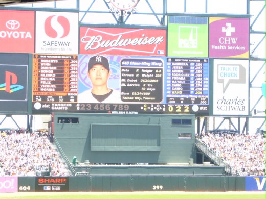 看起來,阿民這場球控球不怎麼好,壞球很多,加上隊友不連貫。看得心驚膽跳。不過,這次因為場內有許多洋基球迷,我們也放聲加油,整場球賽氣氛不錯。阿民還上場打擊,可惜三次都被三振。