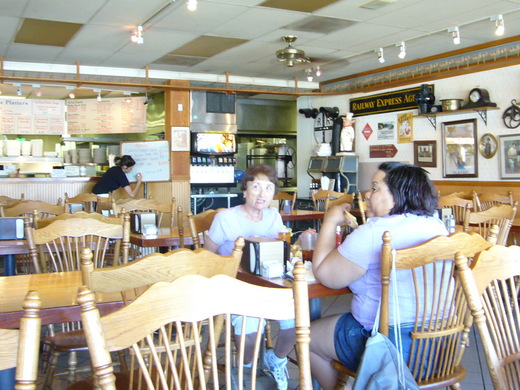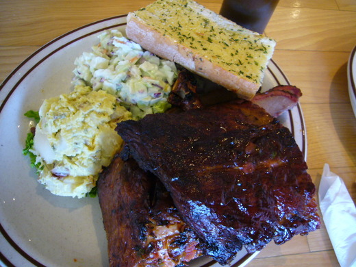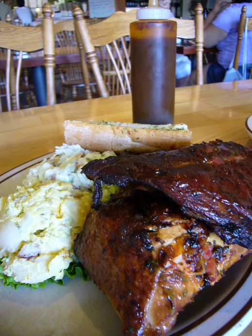 很傳統的美國式餐廳,桌椅都是木製,牆上還有火車繞著轉。來吃Rib的食客看樣子都是老客人,現點現做,付錢後拿號碼牌放在桌上,服務人員會將餐送來。半自助式的美式館子。