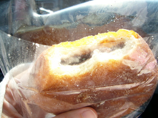 壽司、魚餅、辣炒年糕、蔬菜拌飯、烏龍麵、炒冬粉、泡菜…….。還有麵包部門。芝麻麻糬麵包在矽谷已經流行一陣子了,這次,我試試炸紅豆餡麵包,有點肉桂味道,香噴噴但不太甜。我邊吃邊開車,一下子就吃完啦。