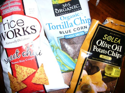 從小愛吃洋芋片,以前在台灣,波卡洋芋片是第一選擇。因為媽咪和小妹都愛吃,家裡隨時有準備。到了美國,洋芋片的牌子可多了,五花八門,以前老公和我最愛「Lays」,一人一次可以吃一大包。後來才發現,可選擇的種類可多了,近期內,愛上的品牌有:有機品牌365的有機藍玉米片(Organic Tortilla Chip, Blue Corn)、大賣場Costco有賣的rice works糙米玉米片,健康又好吃。