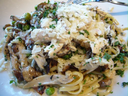 點了炸花枝、淡菜、烤肋排、牛排、蘑菇培根雞肉義大利麵,無論是台灣還是美國,啤酒屋強調喝酒、配菜,氣氛輕鬆,適合家庭或朋友聚餐。食物不算太貴,份量也大。小女人最愛那義大利麵。
