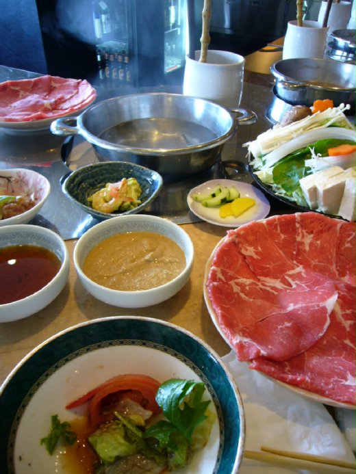 牛肉不錯,厚薄適中,烏龍麵很Q,沙拉很讚,最好的是那芝麻醬,小女人沾料把醬吃光光,白米飯碗也見底了。吃飯期間,我們還遇到幾位工作上的朋友。老闆說,日式小火鍋不喝湯,她自己還是忍不住喝了一碗,有牛肉汁與青菜香的湯,當然甜美。