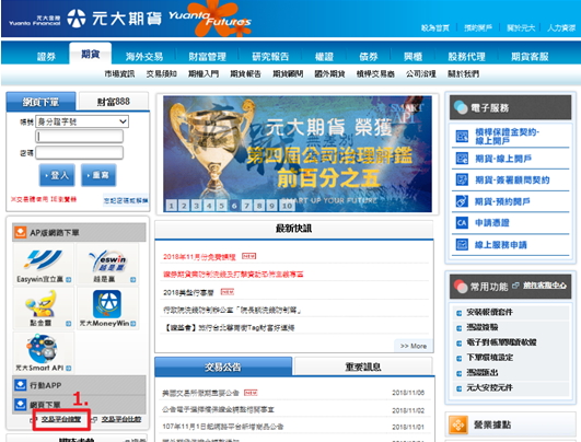 (一).先到【元大期貨首頁】,左手邊【交易平台總覽】