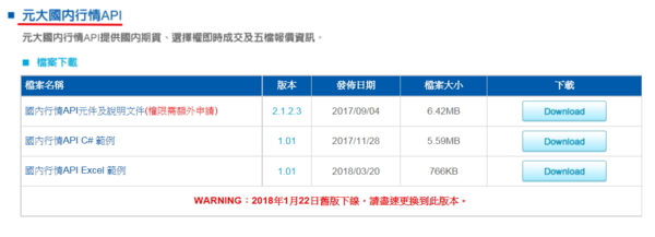 (二).【元大API】的【操作說明】