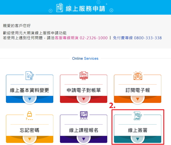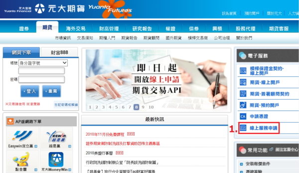 (一).先到【元大期貨首頁】,右手邊【線上服務申請】