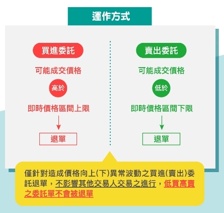 為防範錯誤下單及胖手指導致價格瞬間大幅異常等事件,建置動態價格穩定措施,可減緩價格異常波動與保護交易人