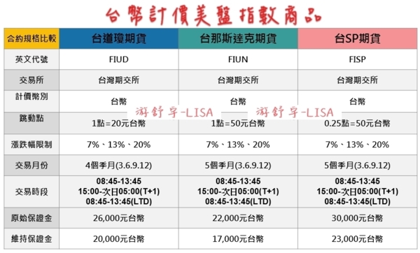 台灣期交所發行的-台幣計價道瓊期貨、台幣計價那斯達克期貨、台幣計價SP期貨