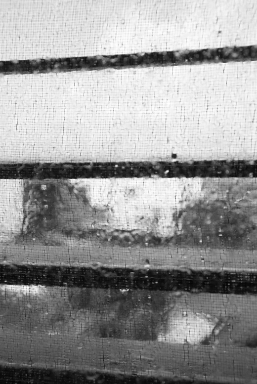 雨水沿著紗窗滑落,畫出了一道痕跡