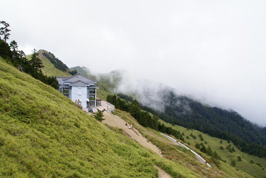 照片二:往合歡山東峰的山徑上,俯瞰雲霧中的松雪樓