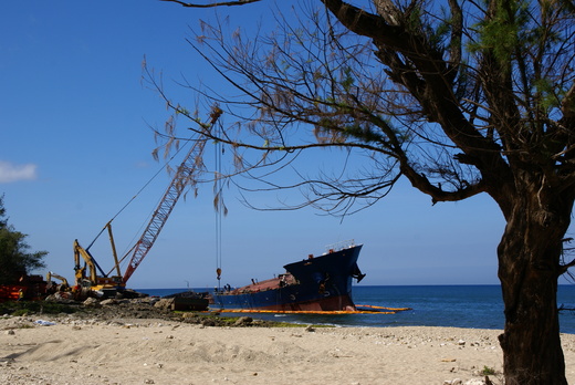 那艘因莫拉克颱風而擱淺的船,落寞的靜躺在珊瑚礁上