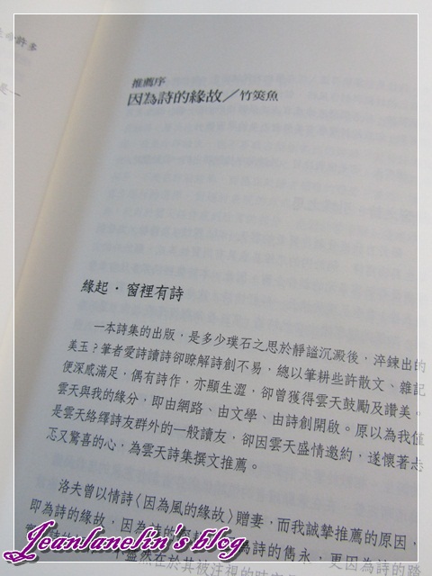 一本詩集的出版,是多少璞石之思於靜謐沉澱後,淬鍊出的美玉?筆者愛詩讀詩卻瞭解詩創不易,總以筆耕些許散文、雜記便深感滿足,偶有詩作,亦顯生澀,卻曾獲得雲天鼓勵及讚美。雲天與我的緣分,即由網路、由文學、由詩創開啟。原以為我僅是雲天絡繹詩友群外的一般讀友,卻因雲天盛情邀約,遂懷著忐忑又驚喜的心,為雲天詩集撰文推薦。