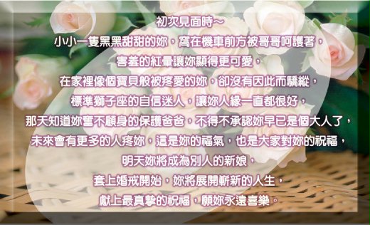 獻上最真摯的祝福,願妳永遠喜樂。