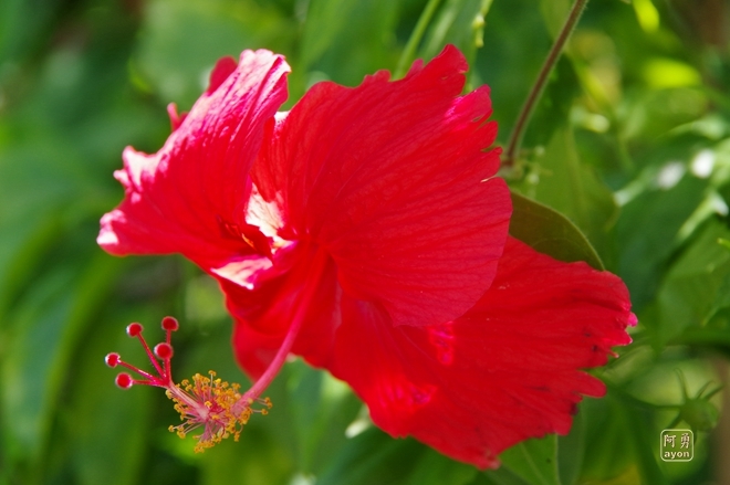 - 4樓. 芭芭辣2014/09/22 09:43原來中文叫木槿,英文叫 Hibiscus 是夏威夷的州花, 見到它令我憶童年, 我摘花中心那細長的蕾放在鼻頭上看那個同伴可持它最久不掉下來.