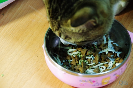 最近,天氣熱了,Q比的胃口不太好,去市場買了吻仔魚給牠搭配飼料吃。